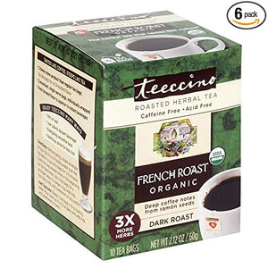 Teeccino Organic French Roast Herbal Coffee - 10 tee bags per pack - 6 packs per case.